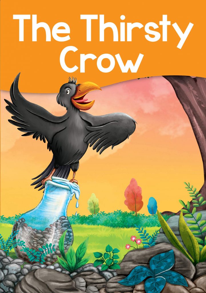 It was a very hot day. A crow, thirsty, flew all over the land looking for water. He flew high, he flew low, he flew for a long time, but could not find any water. Just as he was about to lose hope, he saw a pot of water on the ground. He flew to it to quench his thirst, but alas, he couldn’t reach the water at the bottom of the pot.
